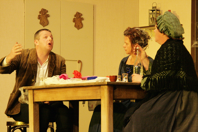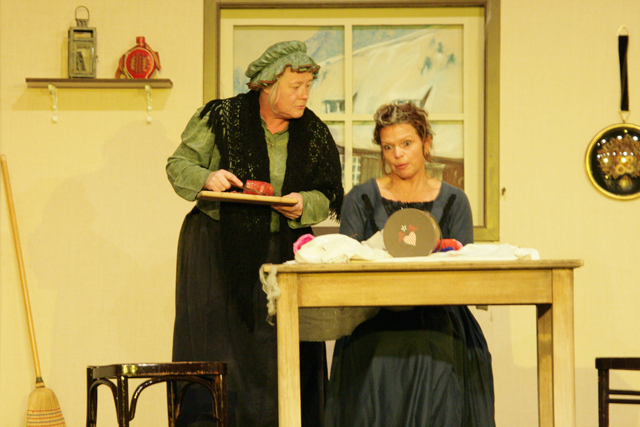 Semen vindt dat Doesjka een moeder moet hebben, dus stuurt hij zijn knecht Mitsjka er op uit om zijn vroegere geliefde Polinka bij hem thuis uit te nodigen om kennis te maken met haar dochter. Deze oude operazangeres, die een liederlijk leven leidde met haar vele minnaars, leeft nu eenzaam bij de gratie van vroedvrouw Matrena en gaat op de uitnodiging in.