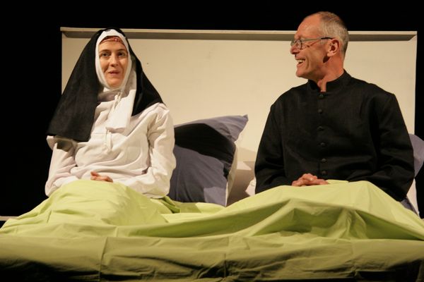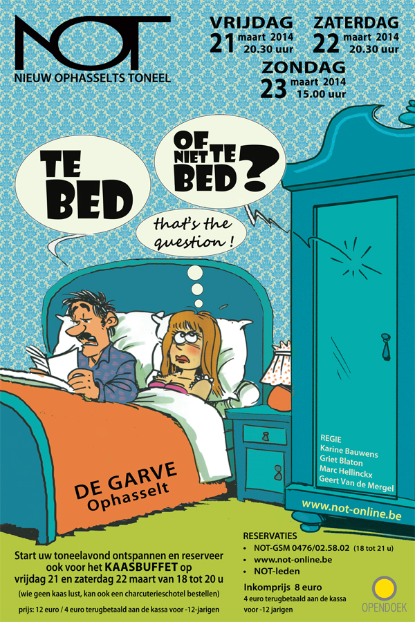 echtelijk BED waarin kinderlijke, pikante, religieuze en gewichtige gesprekken gevoerd worden. Zeven eenakters, zeven maal een bed, zeven maal een verrassende wending, zeven maal een lach, een grinnik, een ondeugend gemonkel …,